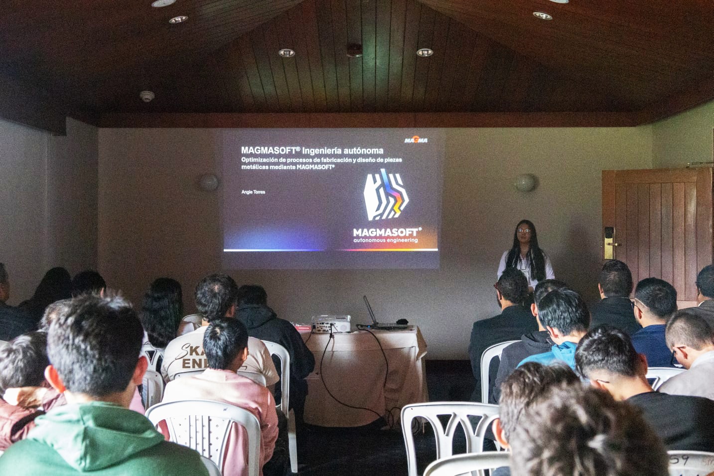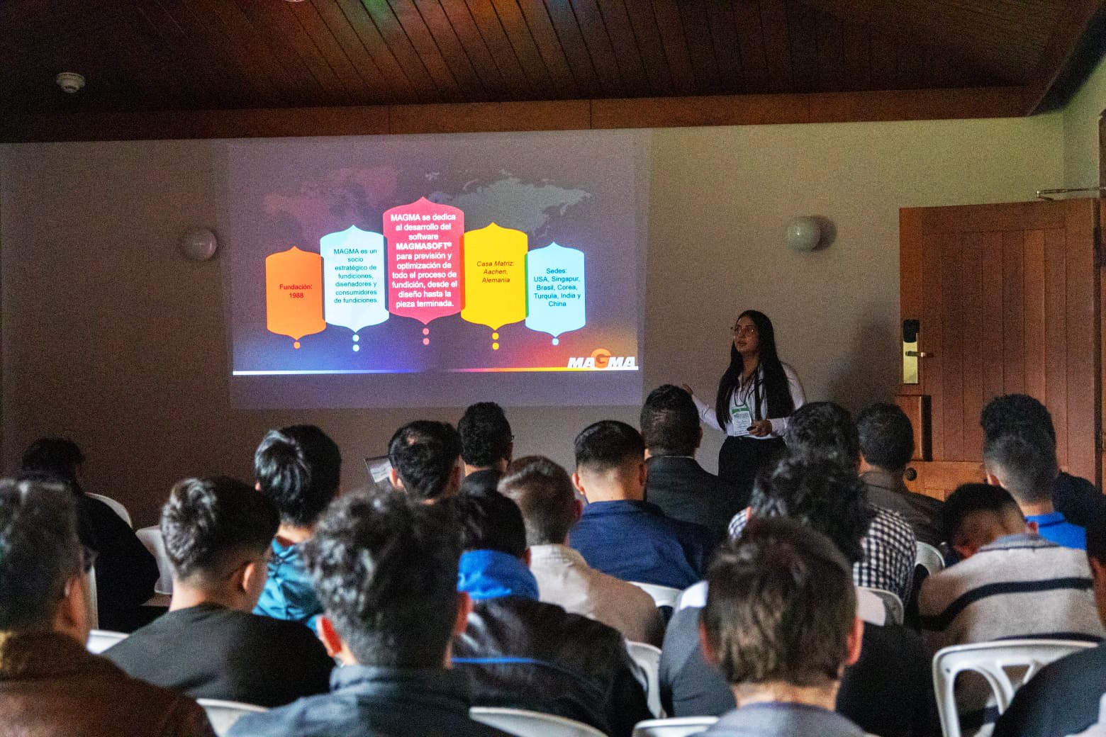 Representando a MAGMA, Angie Torres Peña presentó el tema “MAGMASOFT® Ingeniería Autónoma – Optimización de procesos de fabricación y diseño de piezas metálicas mediante MAGMASOFT®”, destacando cómo la simulación numérica y la inteligencia autónoma del software MAGMASOFT® permiten optimizar procesos de fundición y desarrollar piezas metálicas con mayor eficiencia y precisión.